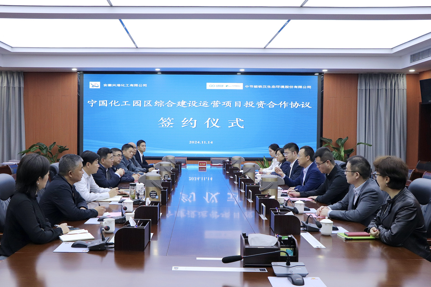 11月14日,中節(jié)能鐵漢生態(tài)環(huán)境股份有限公司與安徽興港化工有限公司在安徽省寧國市簽署了《寧國化工園區(qū)綜合建設運營項目投資合作協(xié)議》。寧國市委常委、寧國經(jīng)濟技術(shù)開發(fā)區(qū)黨工委書記、管委會主任金寧,中節(jié)能鐵漢黨委書記、董事長何亮出席儀式并見證簽約。